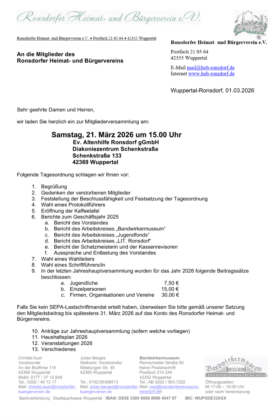 | EMPFÄNGER | Ronsdorfer Heimat- und Bürgerverein |